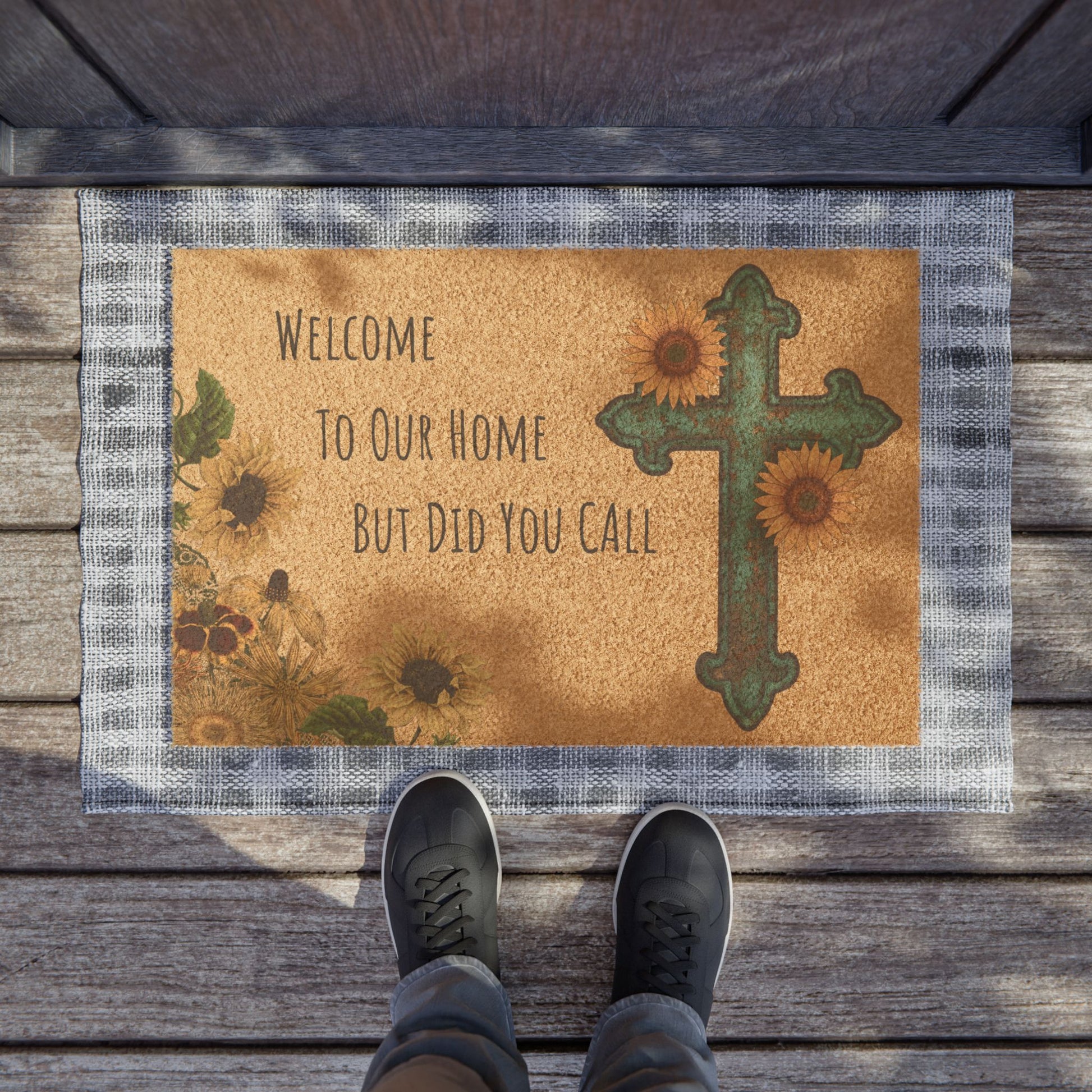 Rustic Welcome Doormat, Floral Home Decor, Faith-Inspired Entryway Mat, Gift for New Home, Church Welcome Mat, Sunflower Decor